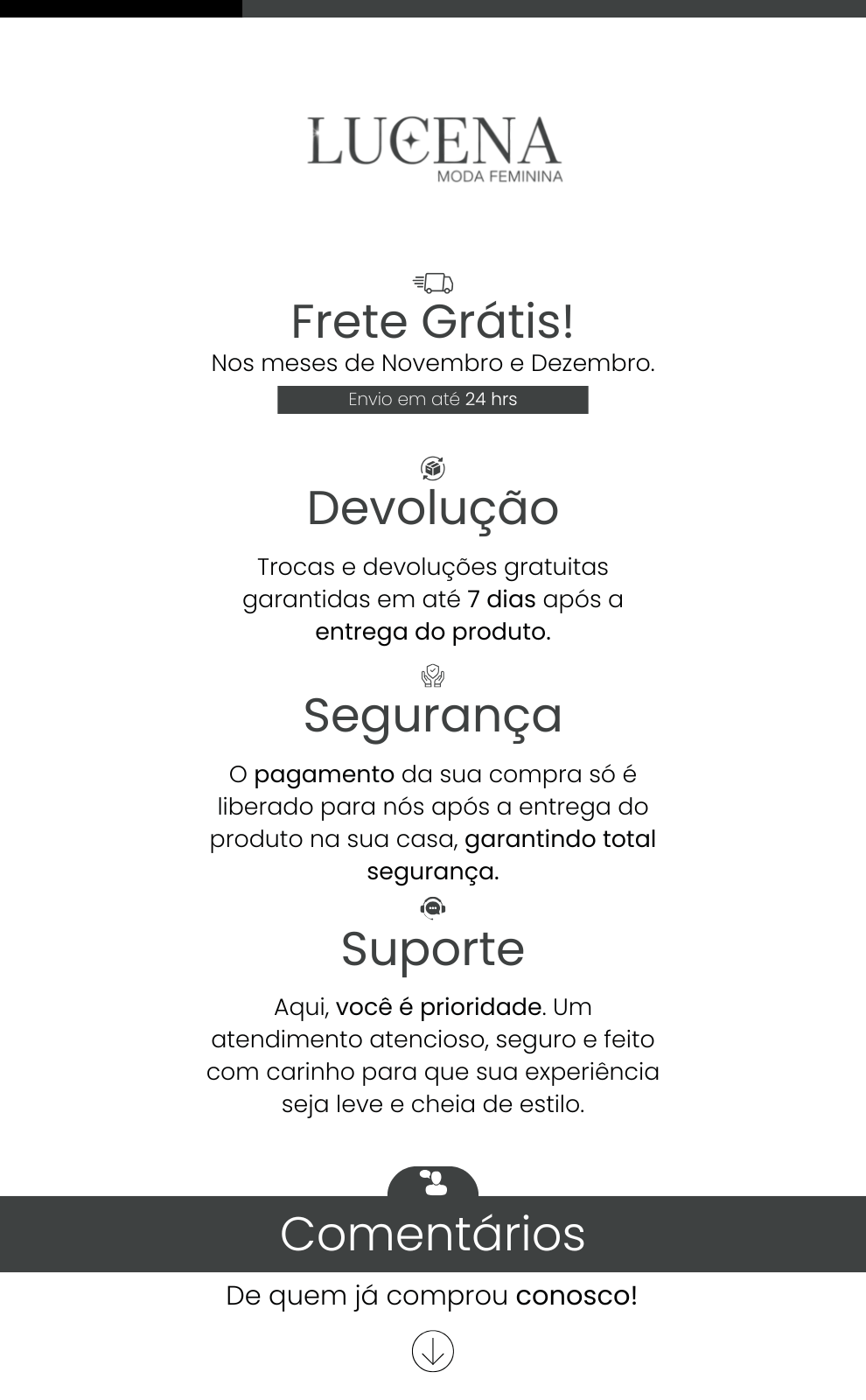 ✨ Conforto e Estilo: O tecido leve e elástico garante um caimento maravilhoso, proporcionando conforto durante todo o dia.